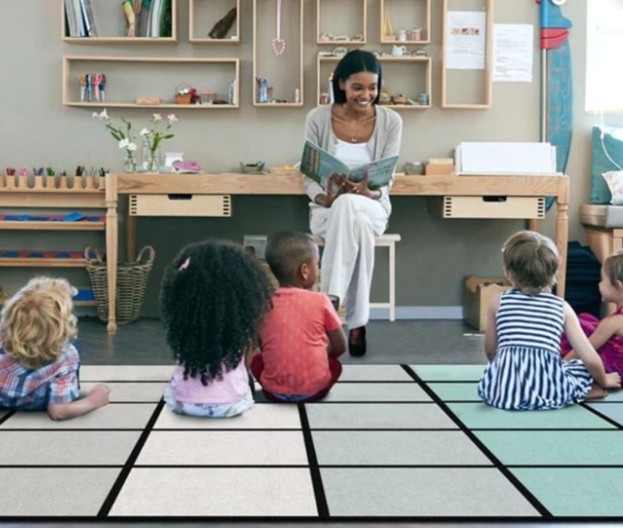 Keeping children within the guidelines of social distance rules is important in classrooms and this rug helps. The school style carpet allows each child to have their own spaces.